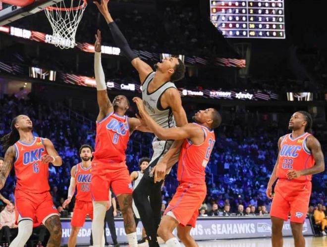 决胜时刻,文班尽显巨星本色,8分钟时间得到15分1盖帽,帮助球队领先4分进入最后一分钟。终场前10秒,双方开始点球大战,频频利用战术犯规让对手站上罚球线,随着最后杰伦-威廉姆斯故意二罚一中,卡鲁索补篮偏出,比赛时间走完。最终全场比赛结束,马刺111-109险胜雷霆晋级NBA杯决赛,同时终结雷霆16连胜,送对手赛季第二败。这一战,我必须承认5个事实。第一,看来雷霆也并非一家独大,本赛季谁能笑到最后夺冠,还说不定,马刺毕竟也是一支年轻球队,才刚开始崛起,就能击溃雷霆这样的历史级别队伍,确实意想不到。